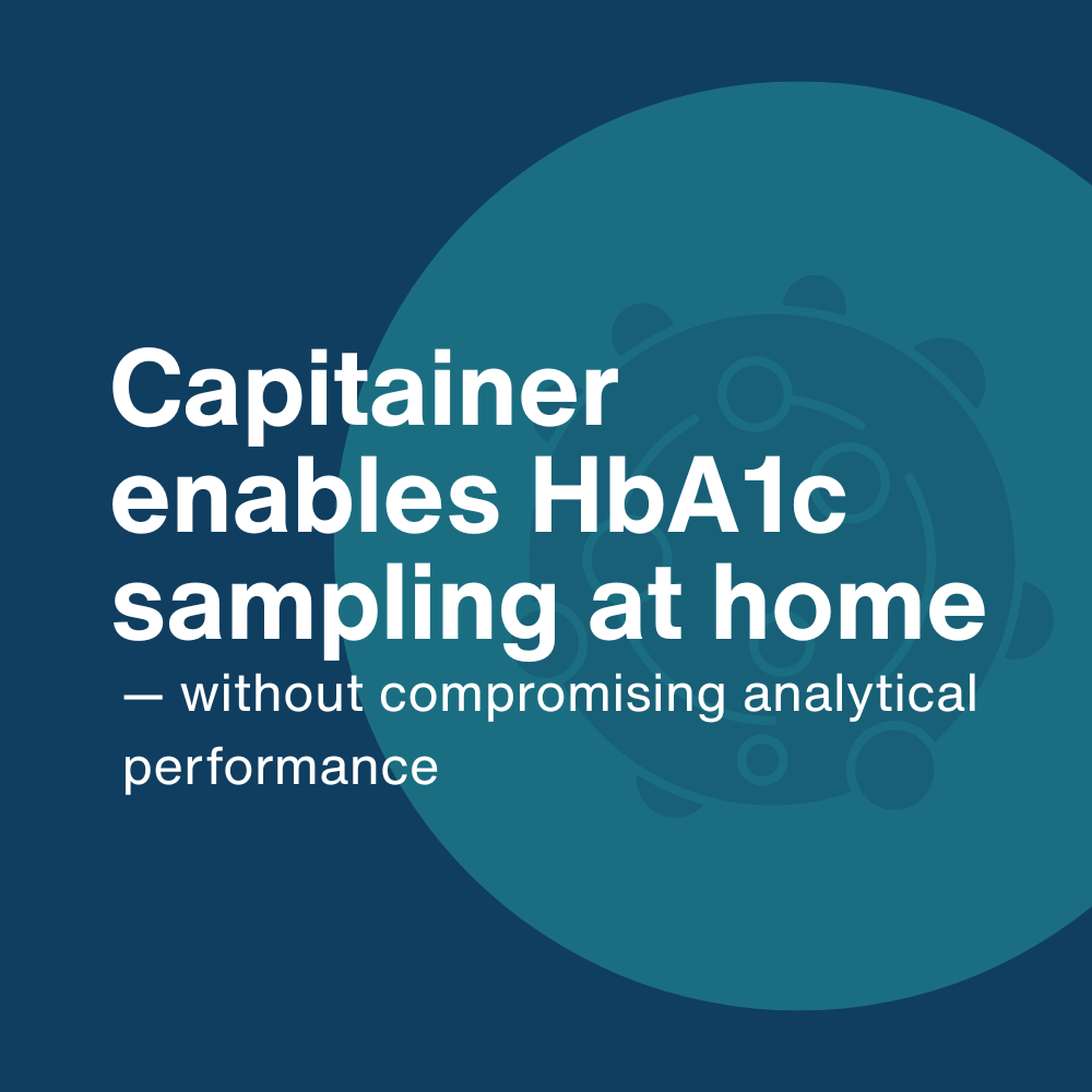 Capitainer enables accurate and patient-friendly self-sampling devices for a wide range of applications – including HbA1c testing for long-term glucose monitoring. HbA1c is an important biomarker for assessing glycemic control and managing conditions such as diabetes, where regular monitoring is essential.
